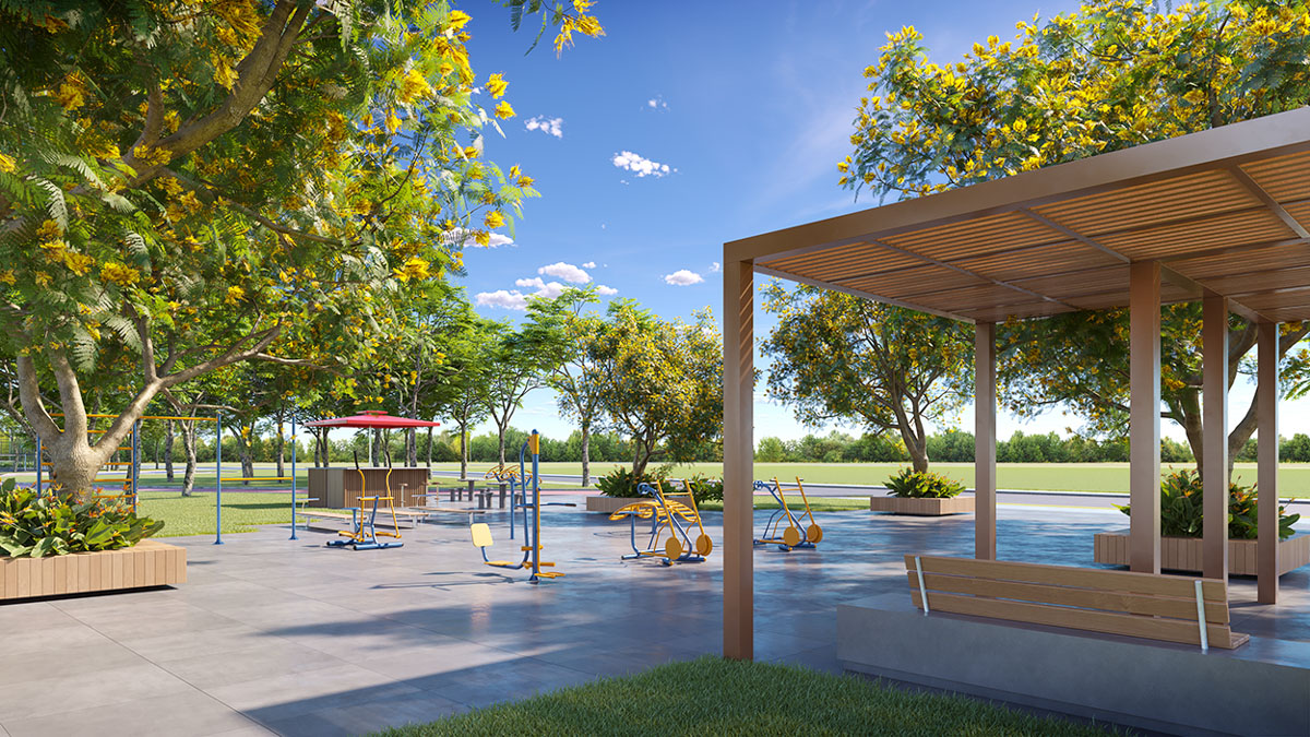 O bairro conta com um parque linear equipado com praça com Wi-Fi, quiosques, estação de ginástica, quadras de areia, quadra poliesportiva, quadra pickleball, playground, pet place, ciclovia, pista de caminhada e bicicletário.