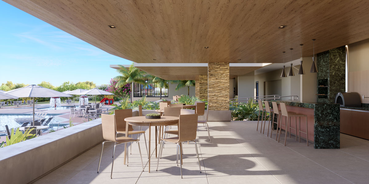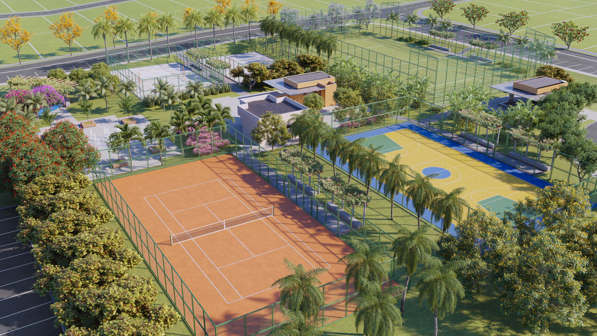 Conta com arquitetura contemporânea, moderno projeto de segurança e lazer completo: piscina semiolímpica, quadras de tênis e areia, espaços Gourmet, salão de festas, espaços Zen, Wine Garden – bar em meio à natureza, academia e sala de pilates by Hiit Liv It, trilha ecológica, complexo pet, parques infantis, mercadinho autônomo, área de pouso para helicóptero, vagas com recarga para carros elétricos, píer e muito mais.