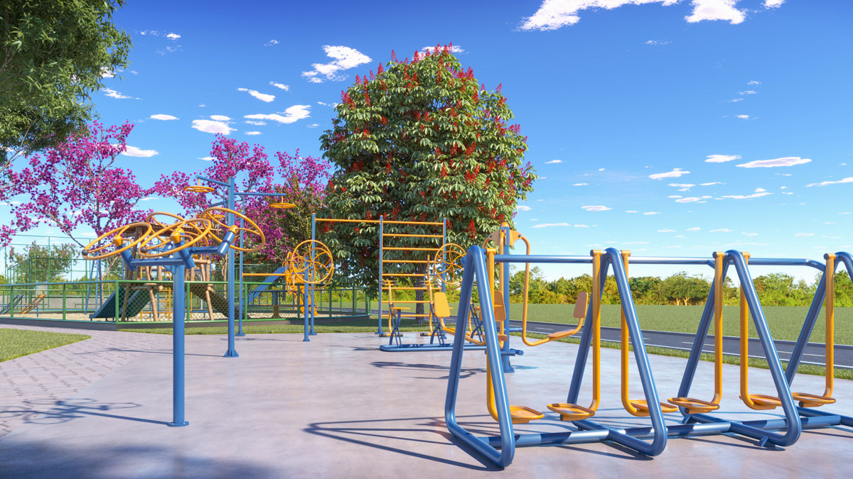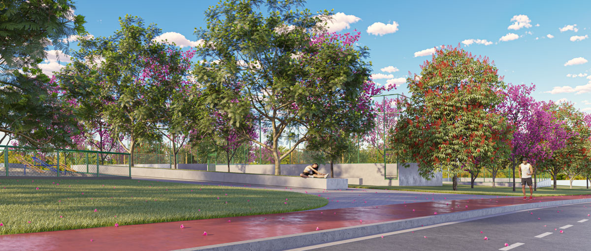 A área de lazer conta com praça, playground, estação de ginástica, pista de caminhada, ciclovia, pet place, quadra de areia, quadra poliesportiva e campo de futebol, garantindo lazer e bem-estar para toda a família.